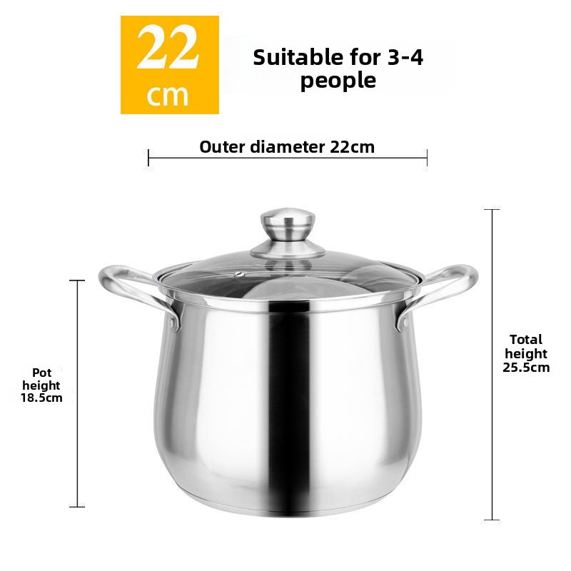 Crafted from durable 304 stainless steel, this extra-high soup pot is designed for large-capacity cooking with added spill protection. The taller body helps reduce splashes and boil-overs, making it especially suitable for soups, stocks, and bulk cooking.
