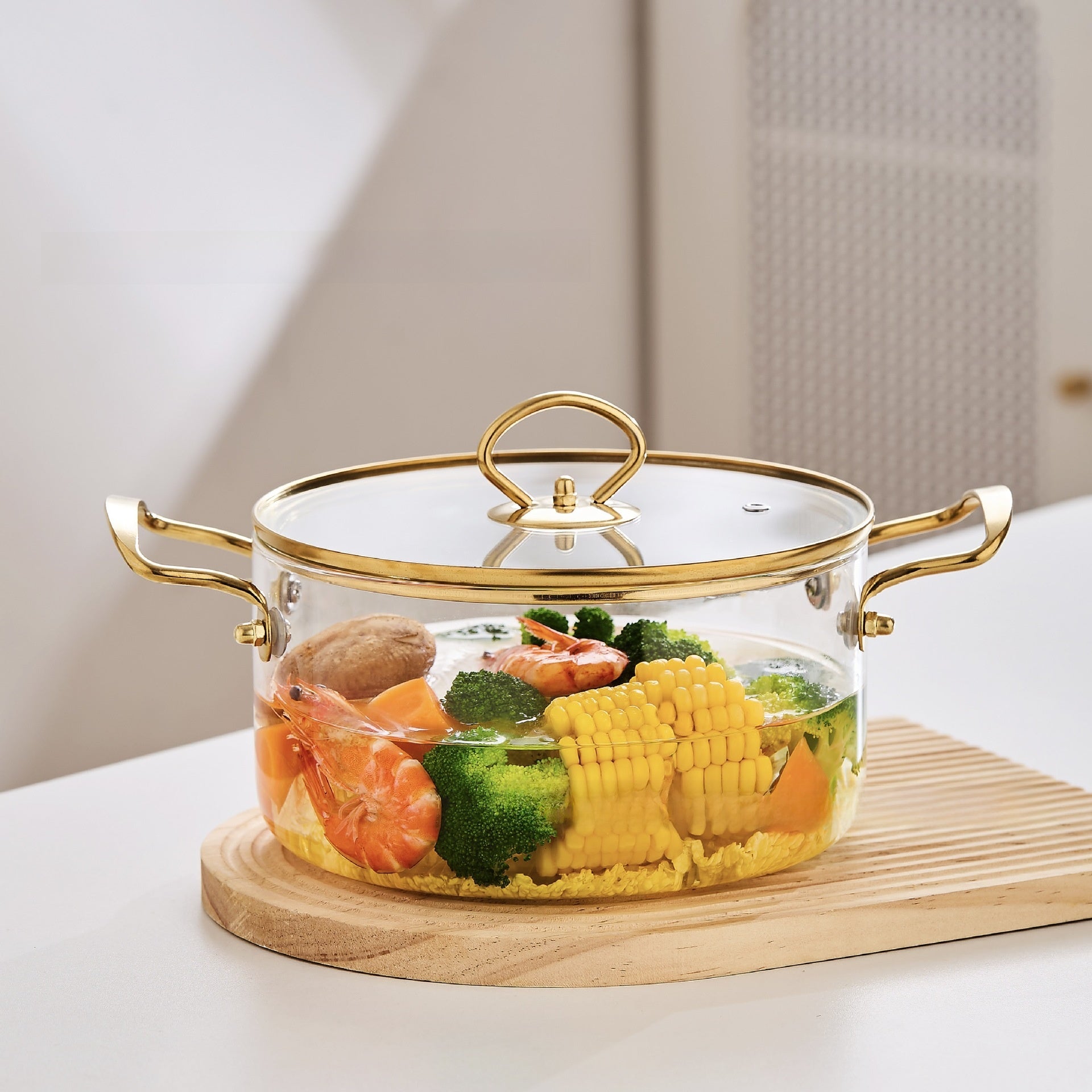 Made from high borosilicate glass, this cooking pot is designed to handle high temperatures safely while offering a clean, chemical-free cooking surface. It’s well suited for preparing milk, soups, stews, or hot pot meals, allowing you to cook while clearly watching the process.