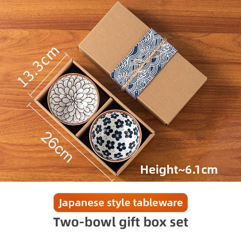 Japanese-style gift box with 2 bowls + 2 chopsticks + 1 plate (rattan edge)