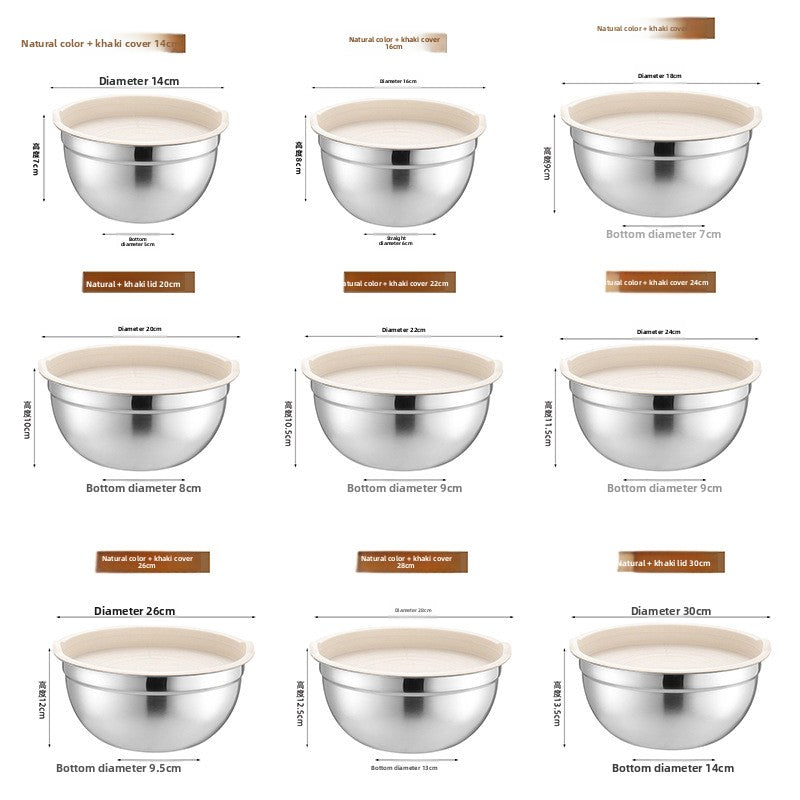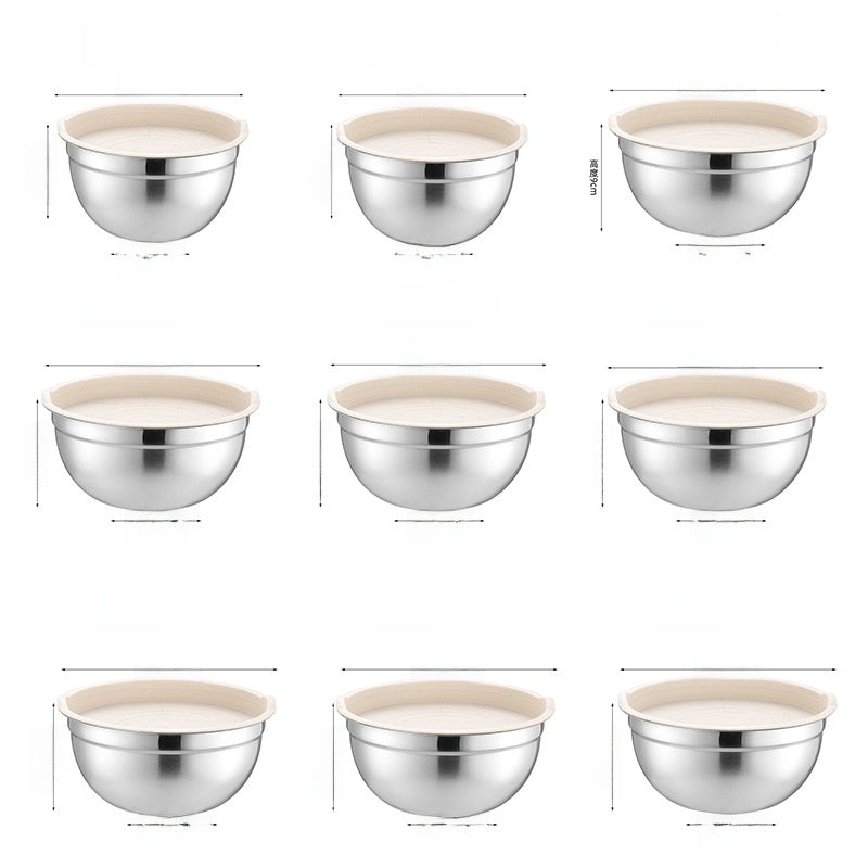 Designed for everyday kitchen prep, this stainless steel mixing bowl combines durability with practical details. The rust-resistant steel body holds up well to regular use, while the silicone base helps keep the bowl stable on countertops during mixing, whisking, or food preparation.