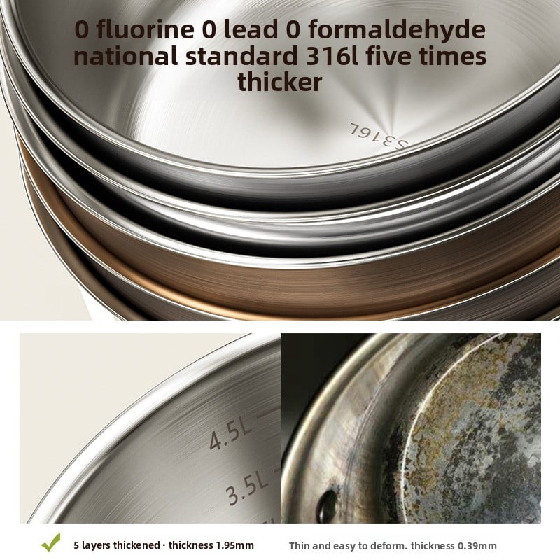 Crafted from premium 316 stainless steel, this soup pot is designed for safe, everyday cooking with long-lasting durability. The uncoated interior provides a clean cooking surface with no chemical coatings, making it a reliable choice for simmering soups, stewing dishes, and steaming foods.